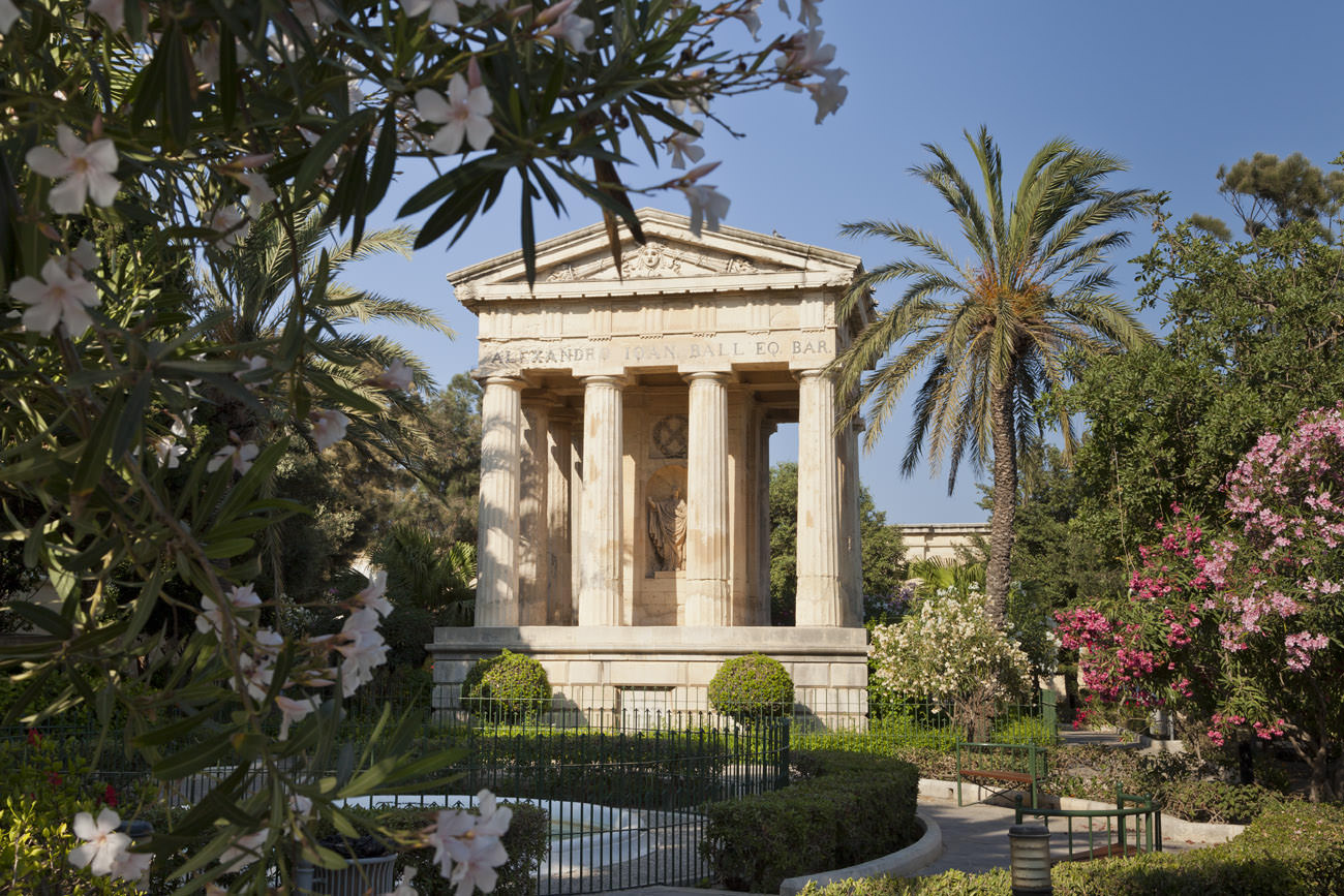 The Lower Barrakka Gardens, set on the bastions overlooking the Grand Harbour in Valletta, provide a serene escape with panoramic views that captivate both locals and visitors. Designed in the neoclassical style, these public gardens offer a lush, verdant space adorned with statues, monuments, and a central neoclassical temple dedicated to Sir Alexander Ball, a British admiral pivotal in the blockade against the French in the late 18th century.